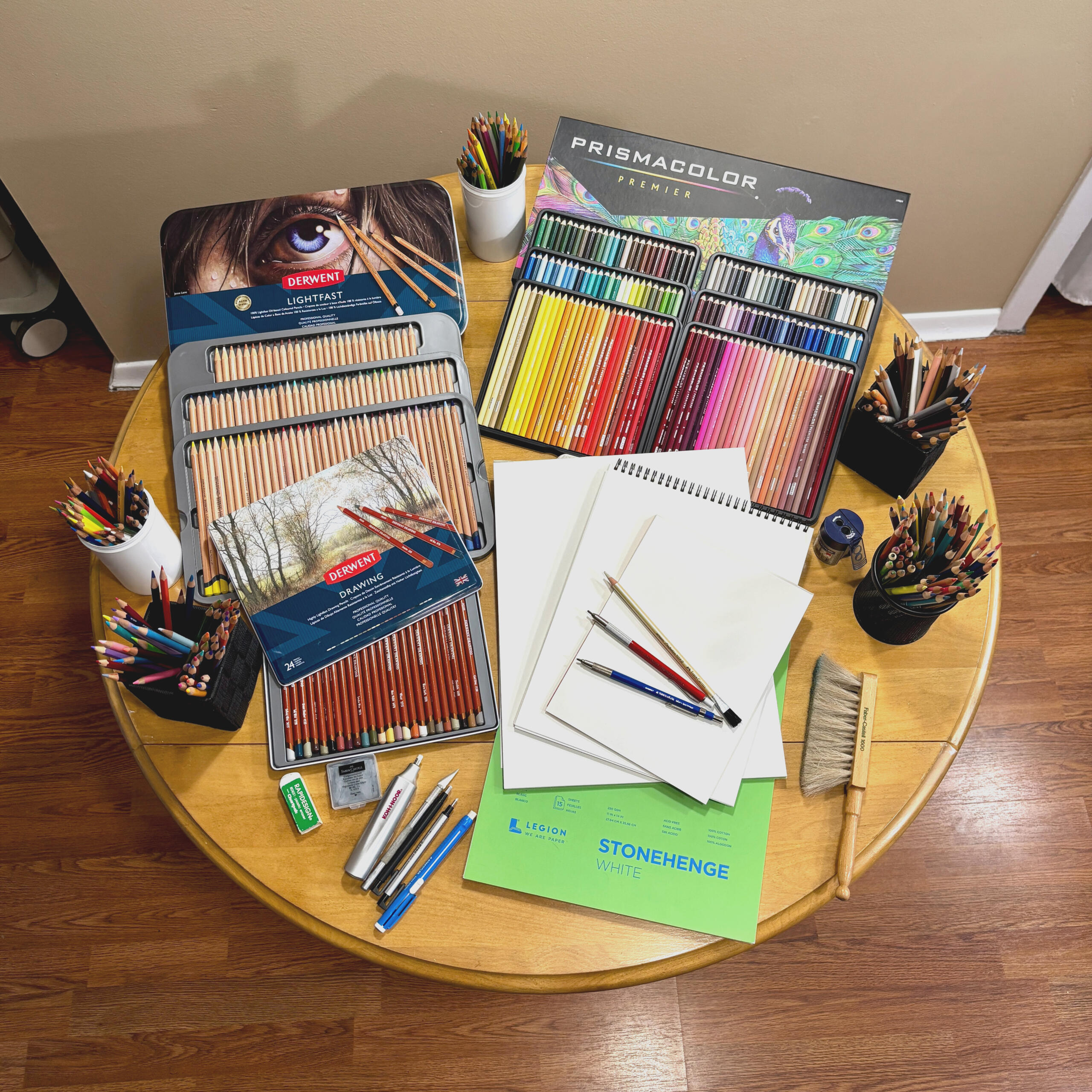 I use highly pigmented, lightfast, professional coloured pencils, that resist fading due to UV light exposure. Faber-Castell Polychromos, Derwent Lightfast, Derwent Drawing, and Prismacolor Premier are my favourites.What colour of paper do you use?